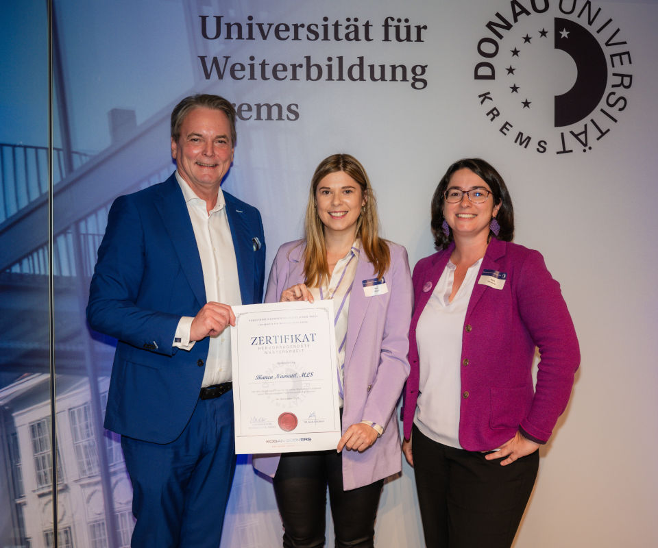 Nach der Premiere 2024 (VersicherungsJournal 21.11.2024) wurde heuer der zweite „Dr.-Klaus-Koban-Preis für Versicherungswissenschaft“ verliehen. Bianca Navratil erhielt die Auszeichnung am Dienstag im Rahmen des Kremser Versicherungsforums 2025 für ihre Masterarbeit über das „Versicherungsverhältnis im Spannungsfeld zwischen Vertragsfreiheit und Verbraucherschutz am Beispiel der Schadenfallkündigung“.