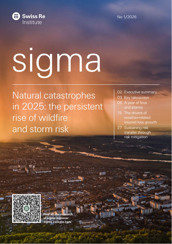 Sigma-Bericht zu Katastrophen im Jahr 2025 (Cover; Quelle: Swiss Re)