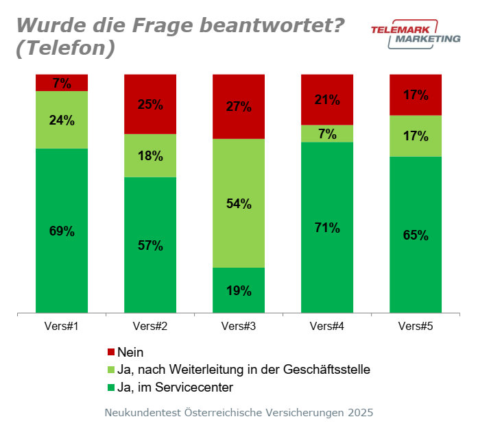 Wurde die Frage beantwortet? Bei allen Versicherern ganz überwiegend: Ja – sei es im Servicecenter oder nach Weiterleitung in die Geschäftsstelle.